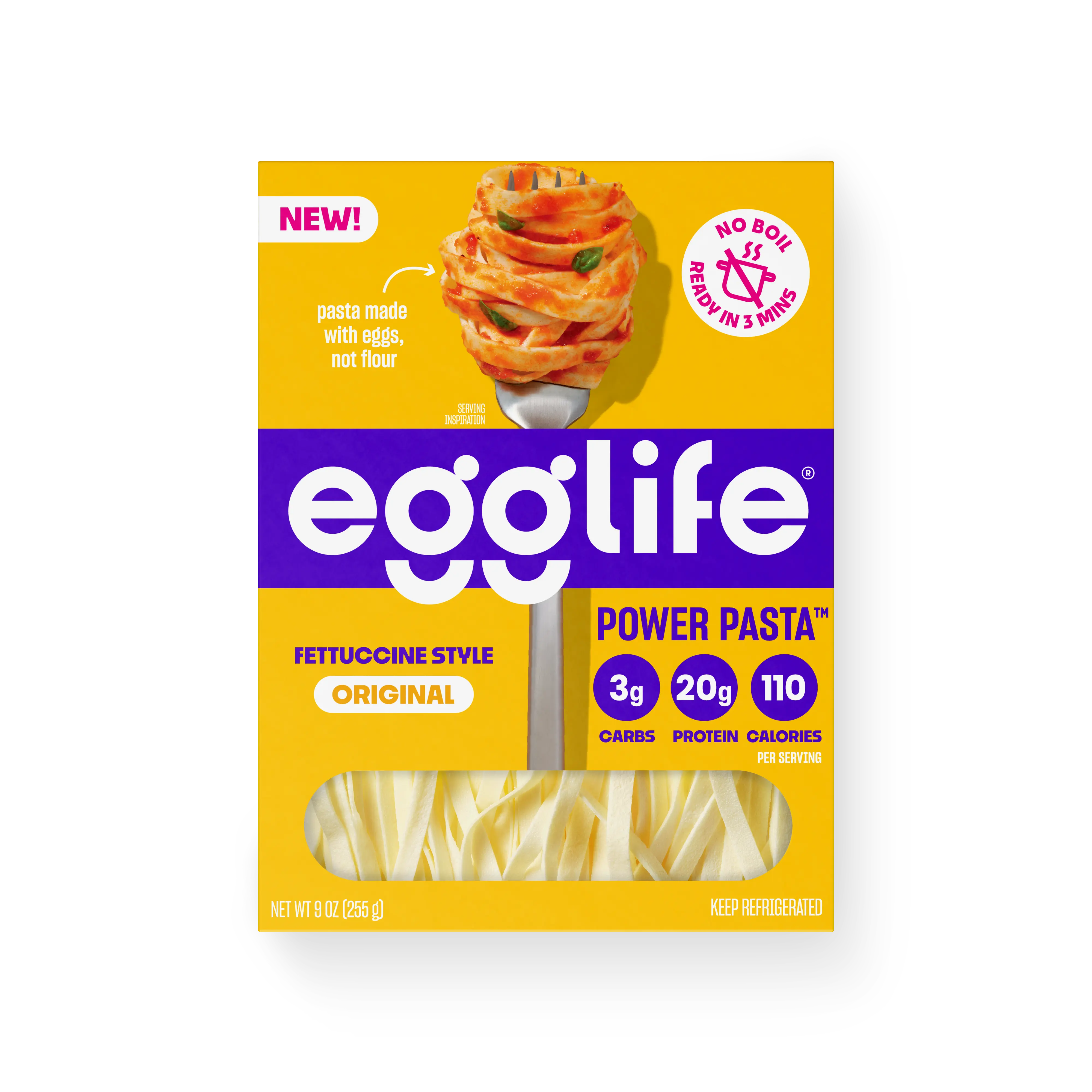 Pasta made from eggs, not flour with 2x the Protein, 90% fewer carbs than traditional refrigerated pasta.