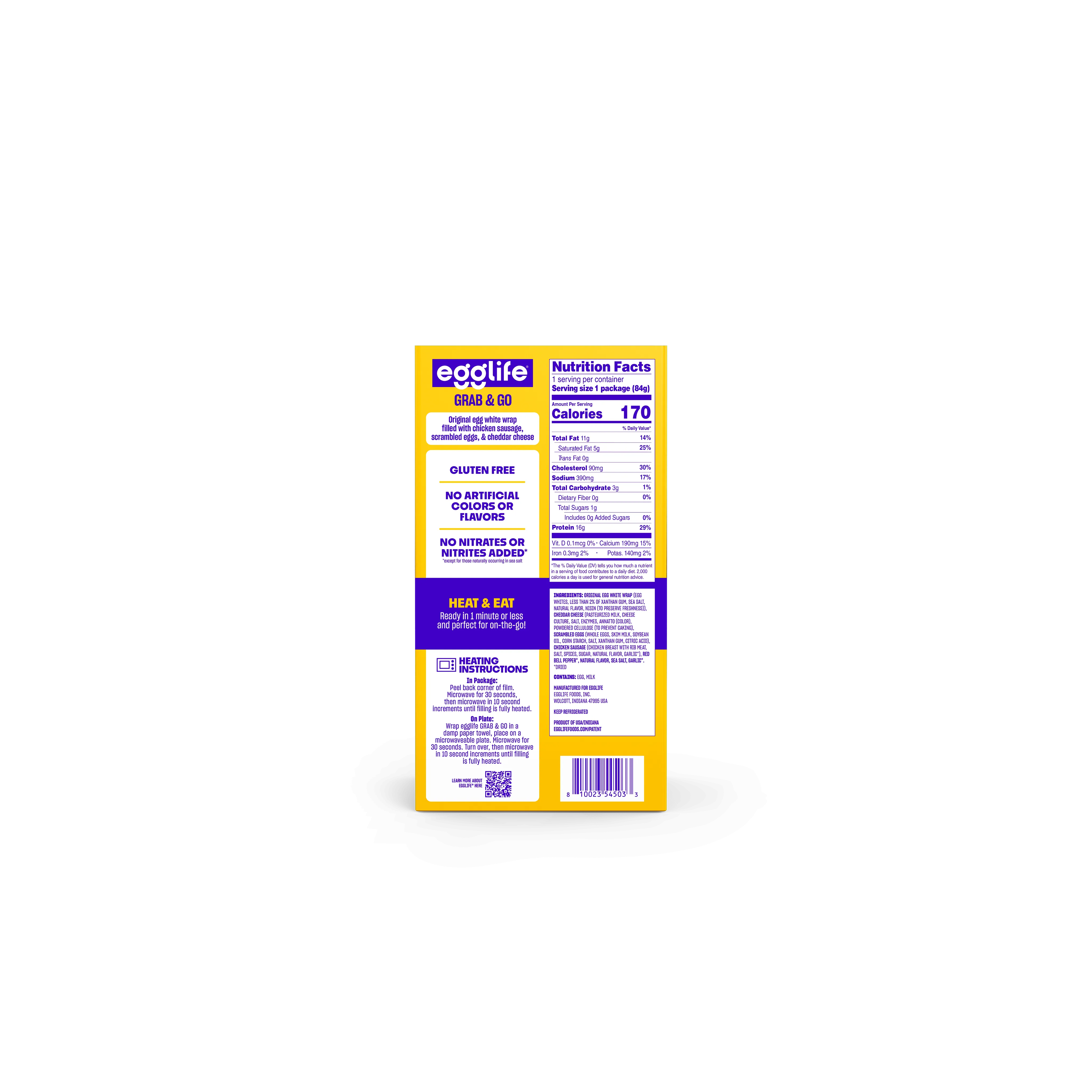 Enjoy a protein-packed breakfast classic as craveable as it is clean. Our signature original egg white wrap, stuffed with chicken sausage, fluffy scrambled eggs, and gooey cheddar cheese.