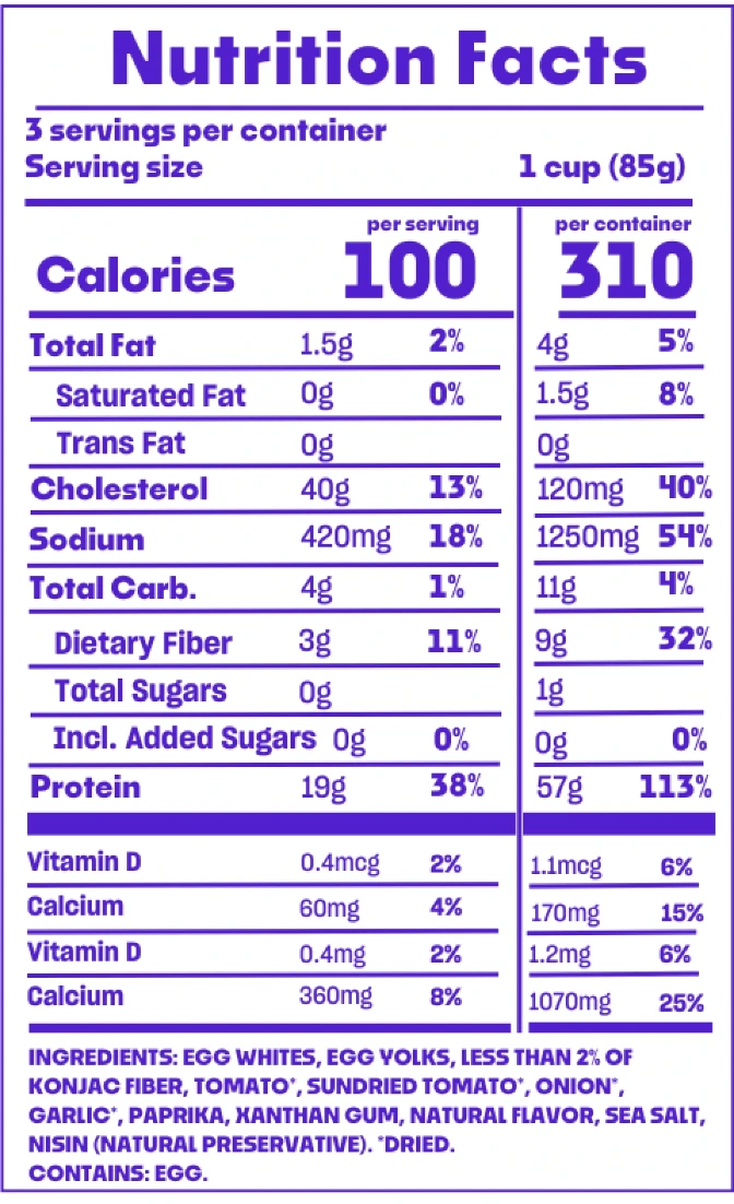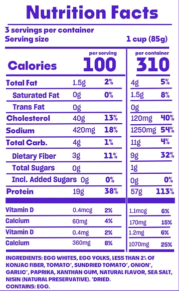 *Per 85g serving of refrigerated fresh pasta, as purchased (FoodData Central).
