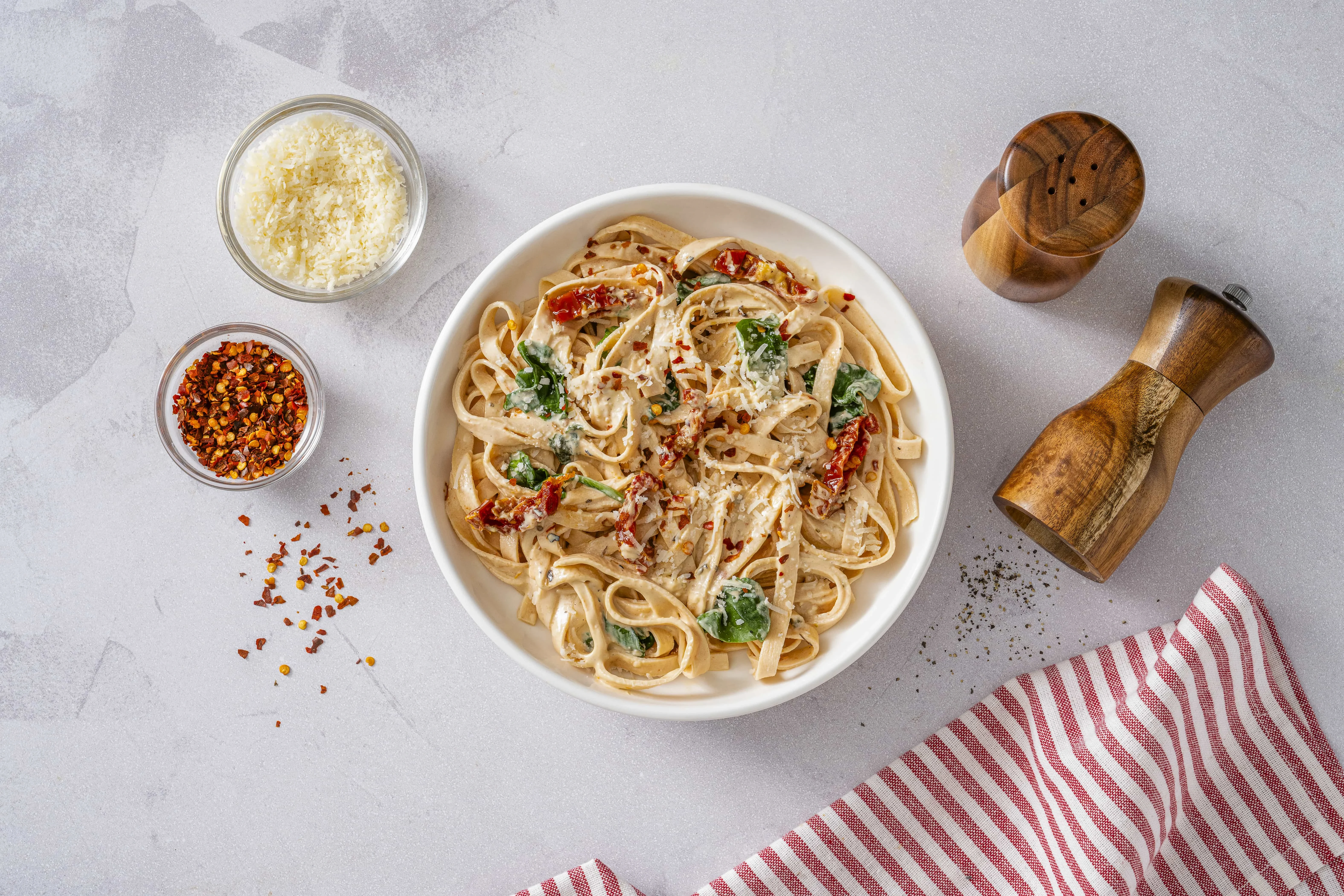 Bold and sun-kissed, this flavor brings the sweet, tangy intensity of real sundried tomatoes into every bite. Transports your taste buds to the heart of the Mediterranean—no passport required. Perfect to add some bold flavor to a classic alfredo or fresh pesto pasta.