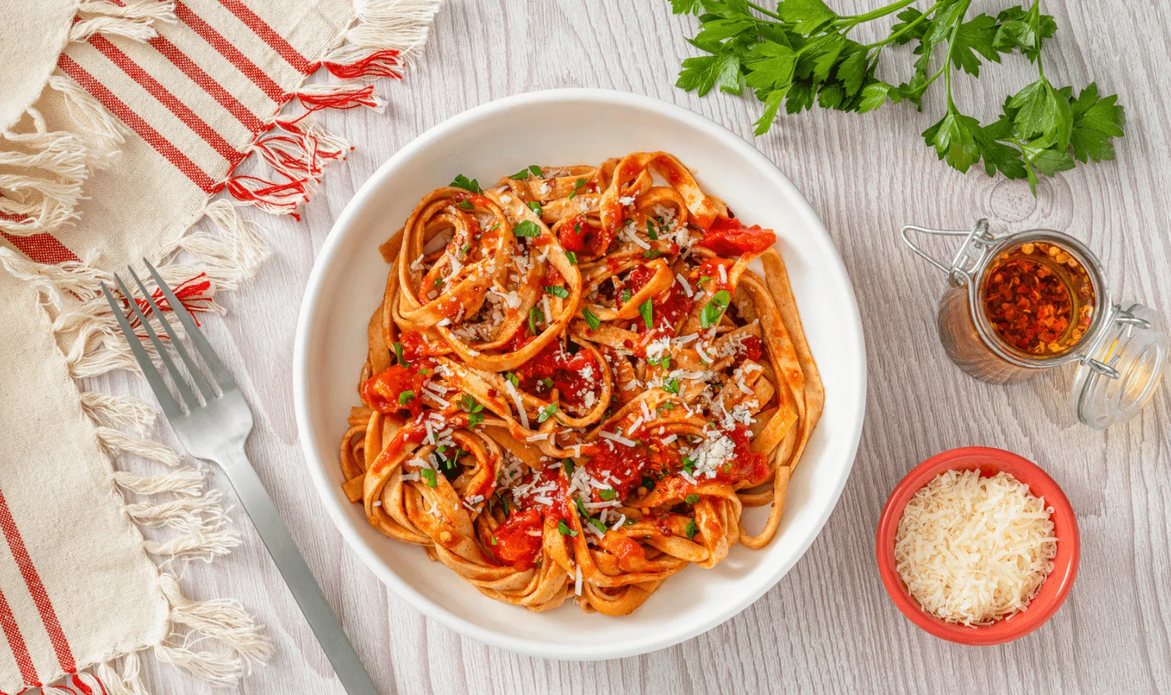 Garnish with parmesan cheese, red pepper flakes and parsley!