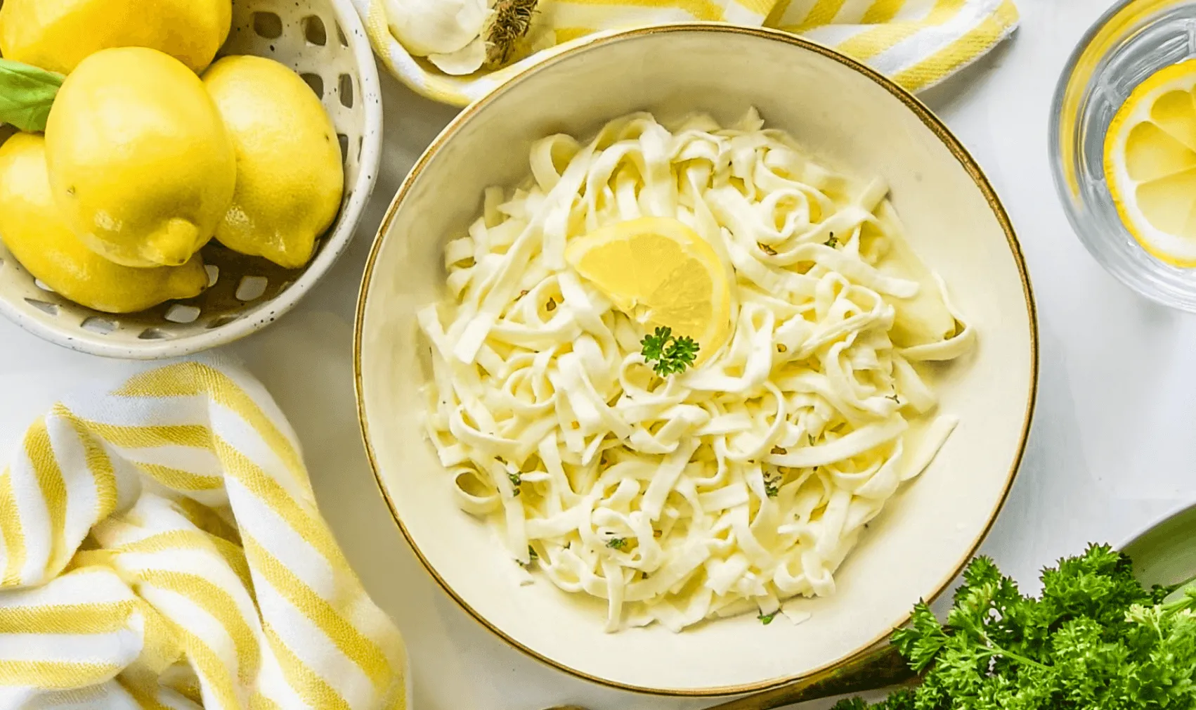 In a skillet over medium-heat, add olive oil and garlic and heat until fragrant. Squeeze the juice of 1 lemon and add heavy cream. Heat for 3 minutes, stirring occasionally.